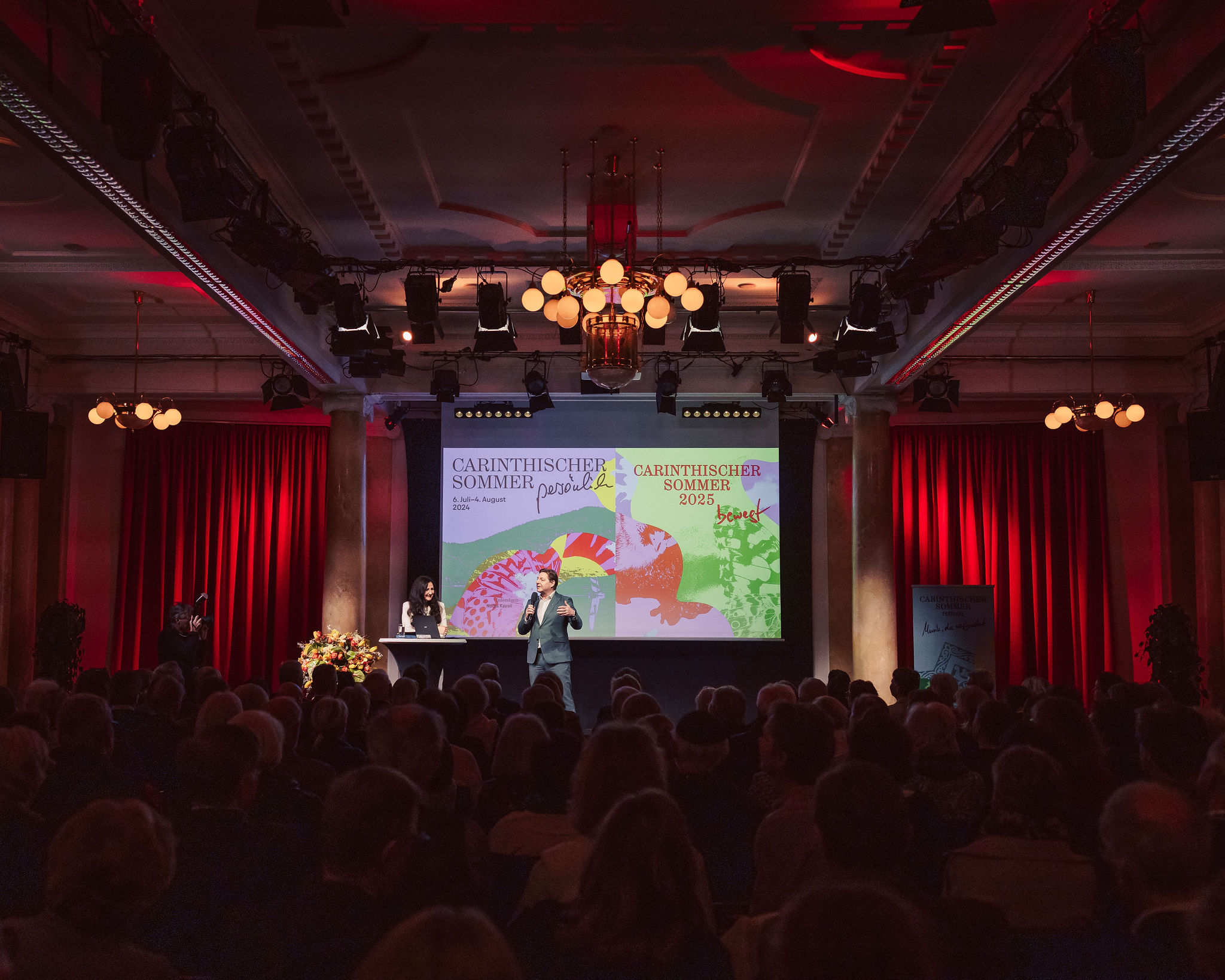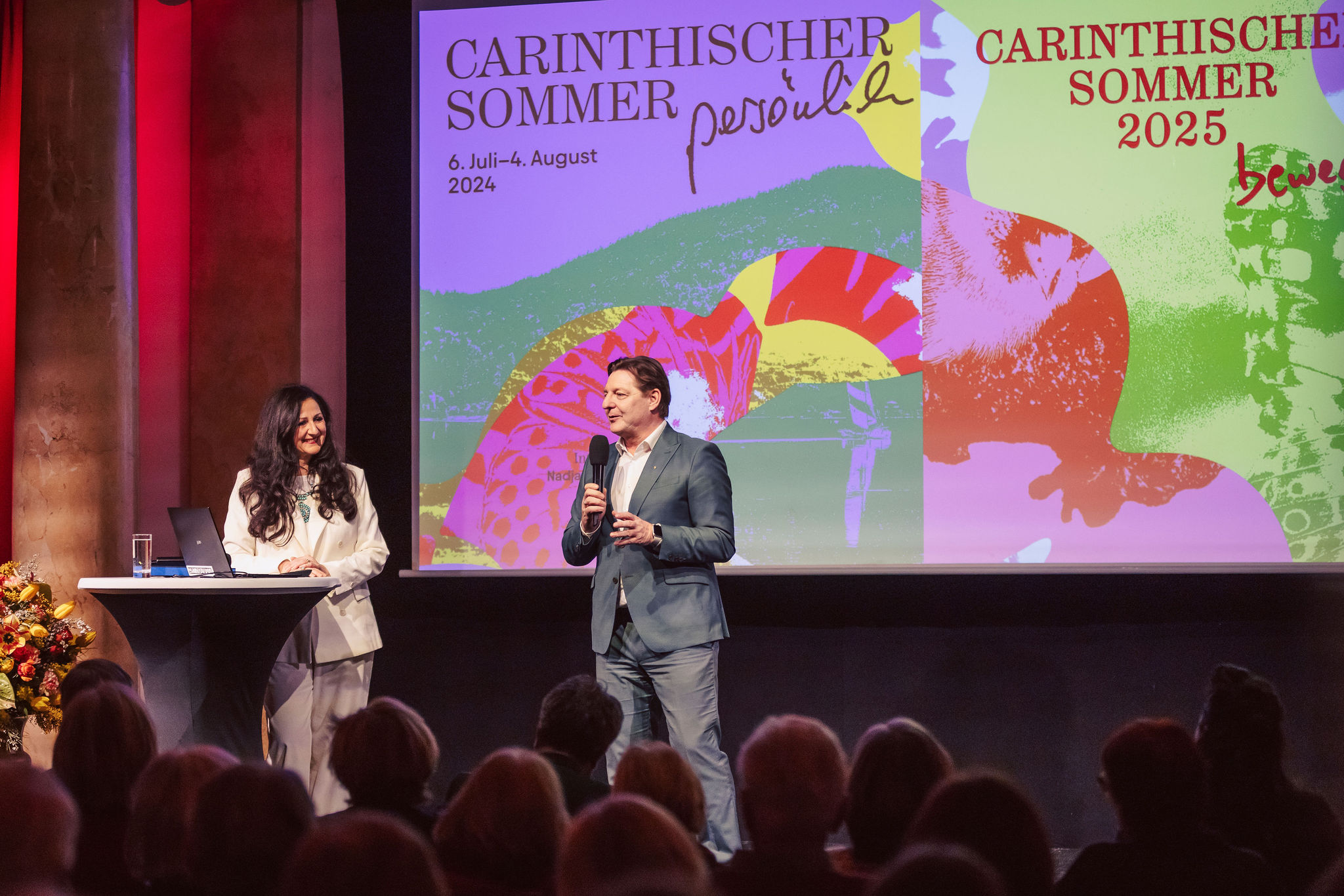 Nach der erfolgreichen Programmpräsentation in Wien haben wir nun im Bambergsaal in Villach das Programm für den Carinthischen Sommer 2026 präsentiert. Nach einer Begrüßung durch Bürgermeister Günther Albel gab Intendantin Nadja Kayali vor vollem Saal spannende Einblicke in Highlights und besondere Konzertformate des diesjährigen Festivalprogramms, das unter dem Motto fern & nah steht.